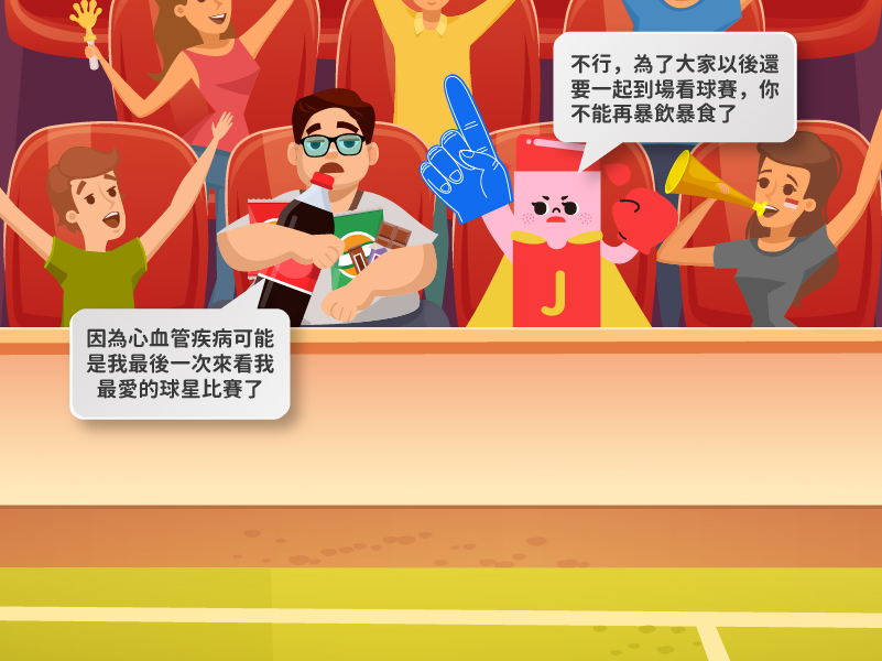 加拿大越來越多人,因為糖分攝取高,而且不愛運動,更多人有著心血管疾病,觀眾席的人越來越少,大家都盯著電視看,再也沒有想要來現場看live球賽了