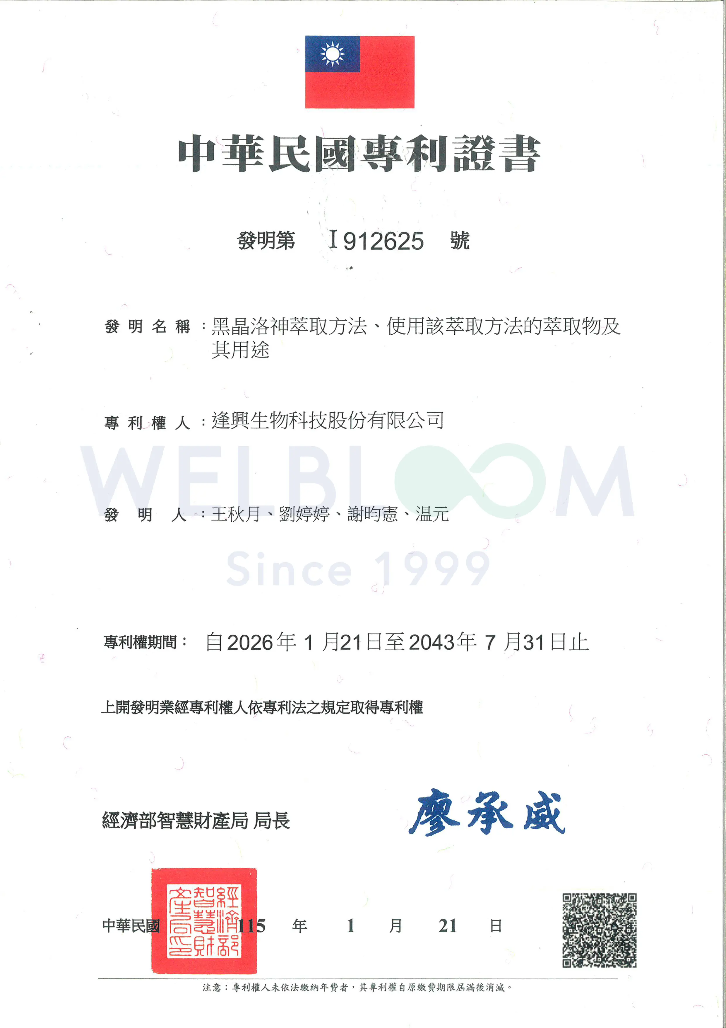 - Wel-ROS6®黑晶洛神萃取取得台灣、日本專利